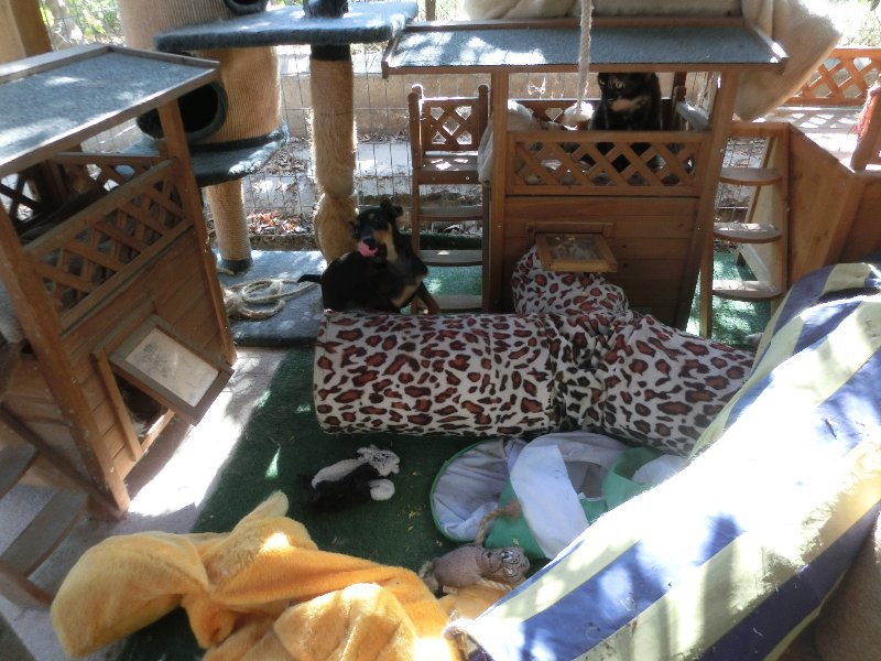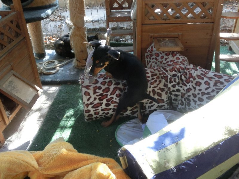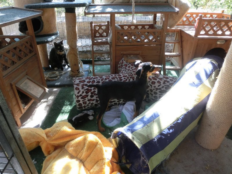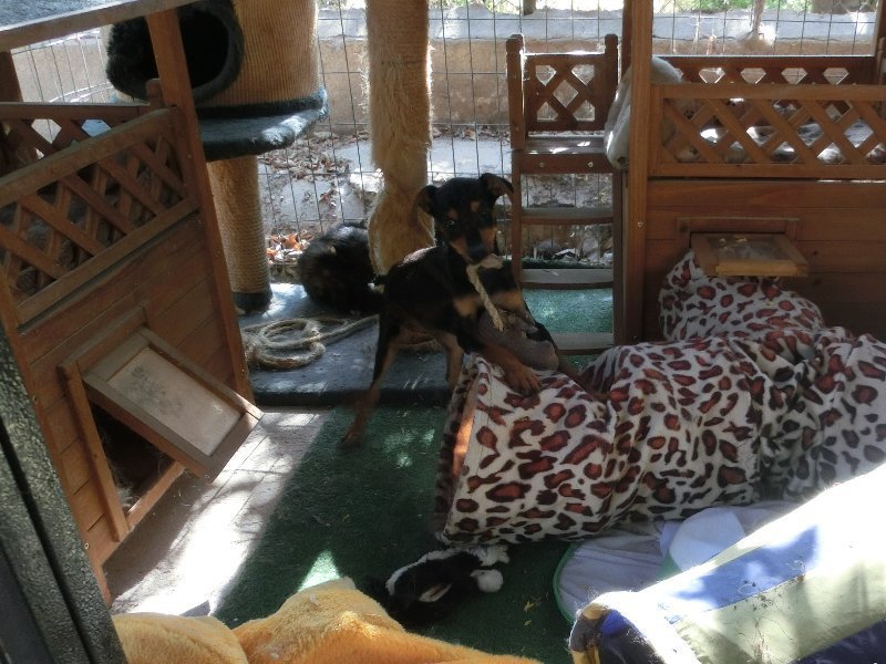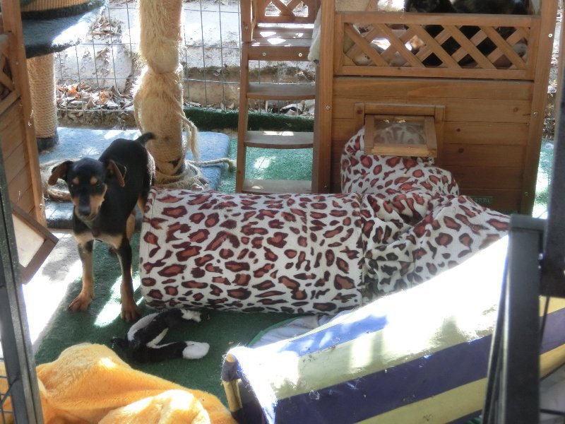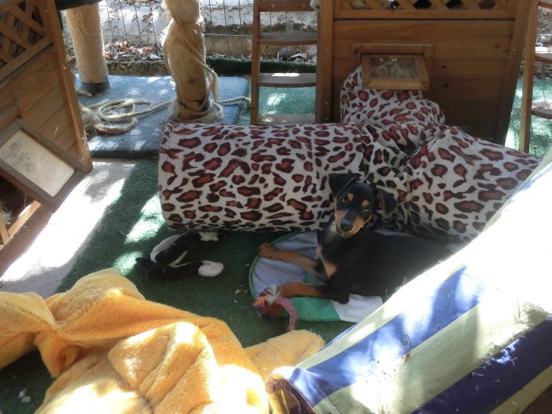 Lilly lebt in der Pflegestelle mit Katzen zusammen. Im Haus kommt sie sehr gut mit ihnen klar. Im Garten werden sie gejagt.