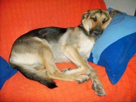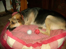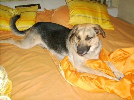 Sie ist eine sehr liebe und brave Hündin, zu jedermann freundlich. Tagsüber faulenzt sie gerne, um in der Dämmerung auf Mäuschenfang zu gehen.