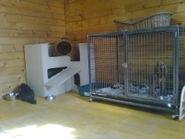 Das Traumhaus für die Welpen ist fertig. Es wurde auch gleich gestrichen, Strom wurde gelegt und noch ein paar Kleinigkeiten verbessert.