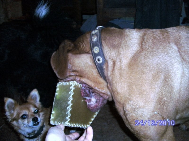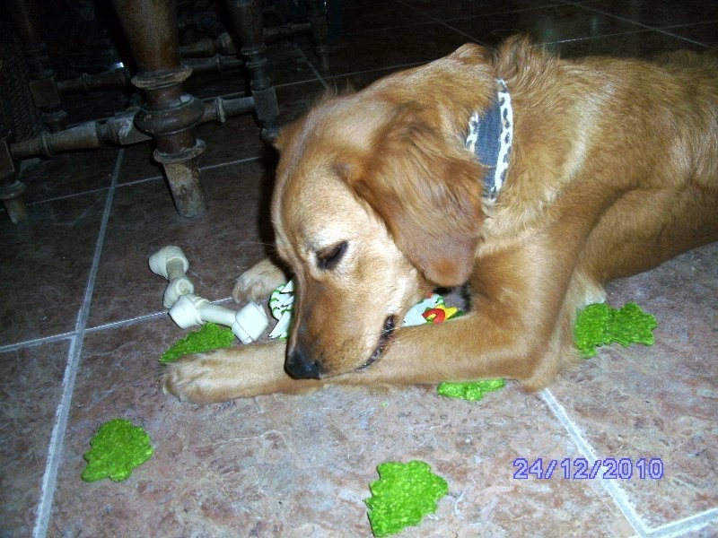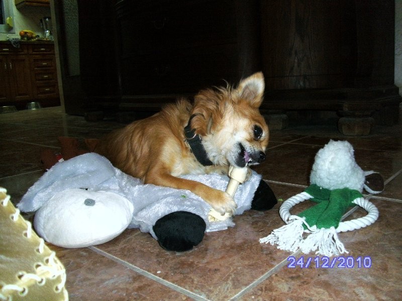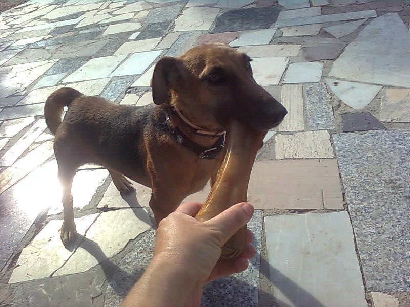 Es kam wieder eine Überraschung über Zooplus. Belinda schnappte sich gleich den grössten Knochen:-)))