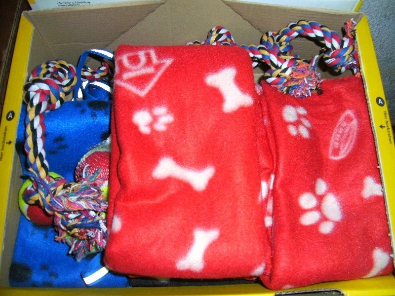 Vielen Dank für die beiden Pakete von Susi B.vollgepackt mit kuscheligen Decken, Leckerchen und Spielzeug. Was für eine Freude und Überraschung!!!