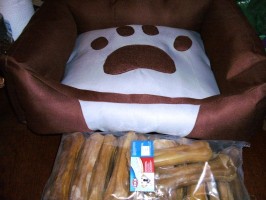 In einem anderen Paket waren auch nochmal Riesenknochen, Kuscheldecken und Hundemäntelchen.